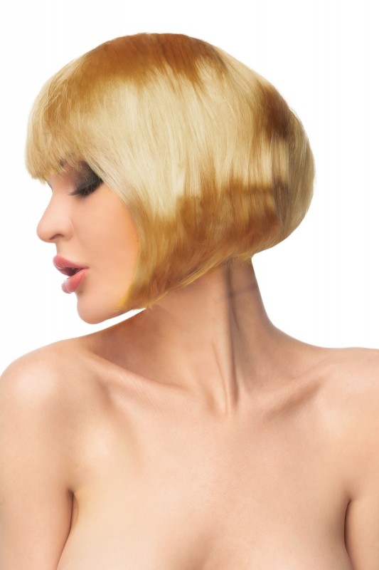Парик "Джага-Джага Кин" - золотистое каре с челкой - отличное решение для различных вечеринок, косплея, фотосессии, интимного свидания!